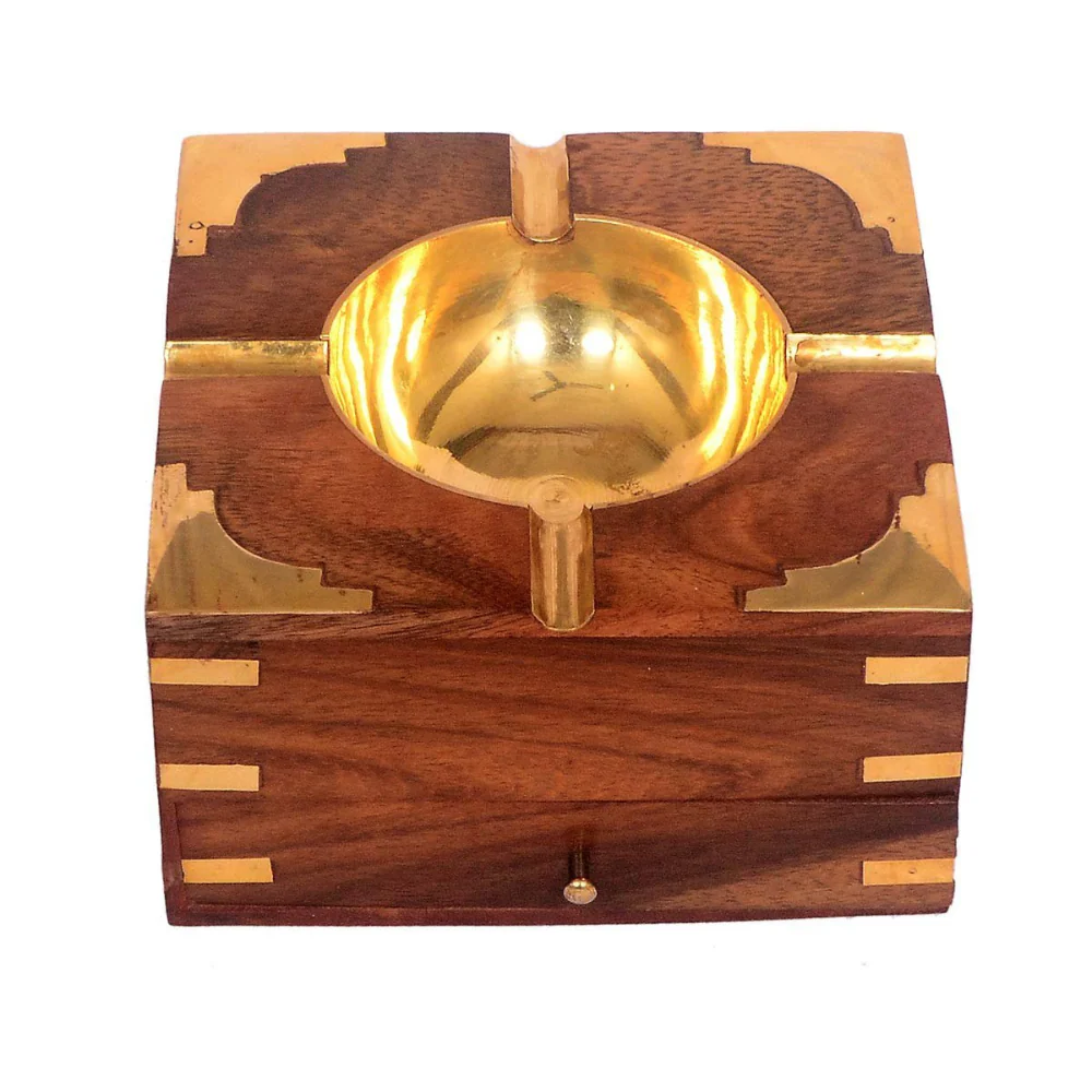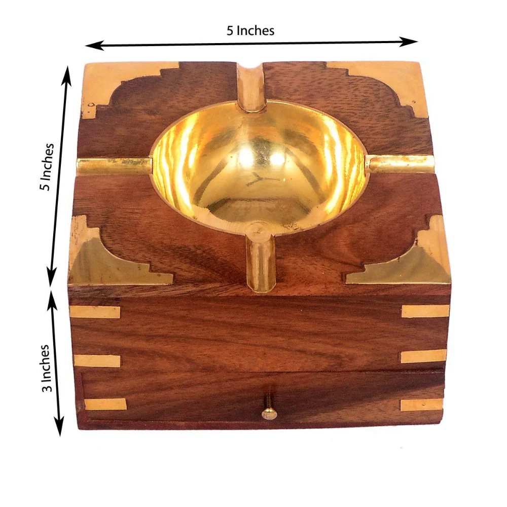 Discover the refined elegance of the MSGLOBALEX Wooden Ashtray with Cigarette Holder — a timeless, handcrafted creation made from premium Sheesham wood, adorned with a brass elephant motif, and equipped with a built-in cigarette storage compartment. This exquisite piece is meticulously crafted by skilled rural artisans from Saharanpur, a region globally acclaimed for its GI-tagged woodcraft tradition.