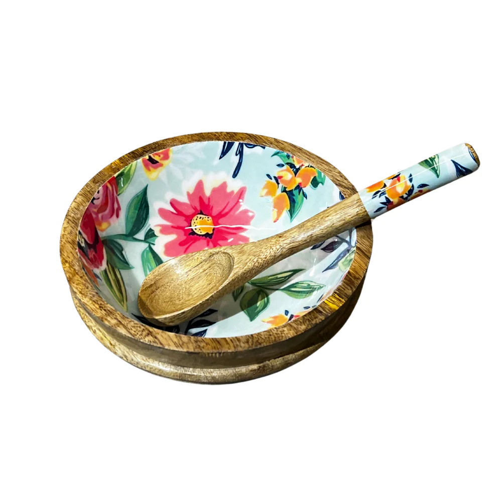 Brighten your table and elevate your ethical collection with the Tropical Bloom Bowl — a radiant blend of heritage Indian artistry and modern-day eco-conscious living. Handcrafted in the heart of Saharanpur, a GI-tagged region celebrated for its world-class woodworking traditions, this two-piece set features a mango wood bowl and spoon detailed with hand-poured epoxy resin in an eye-catching mandala floral motif.