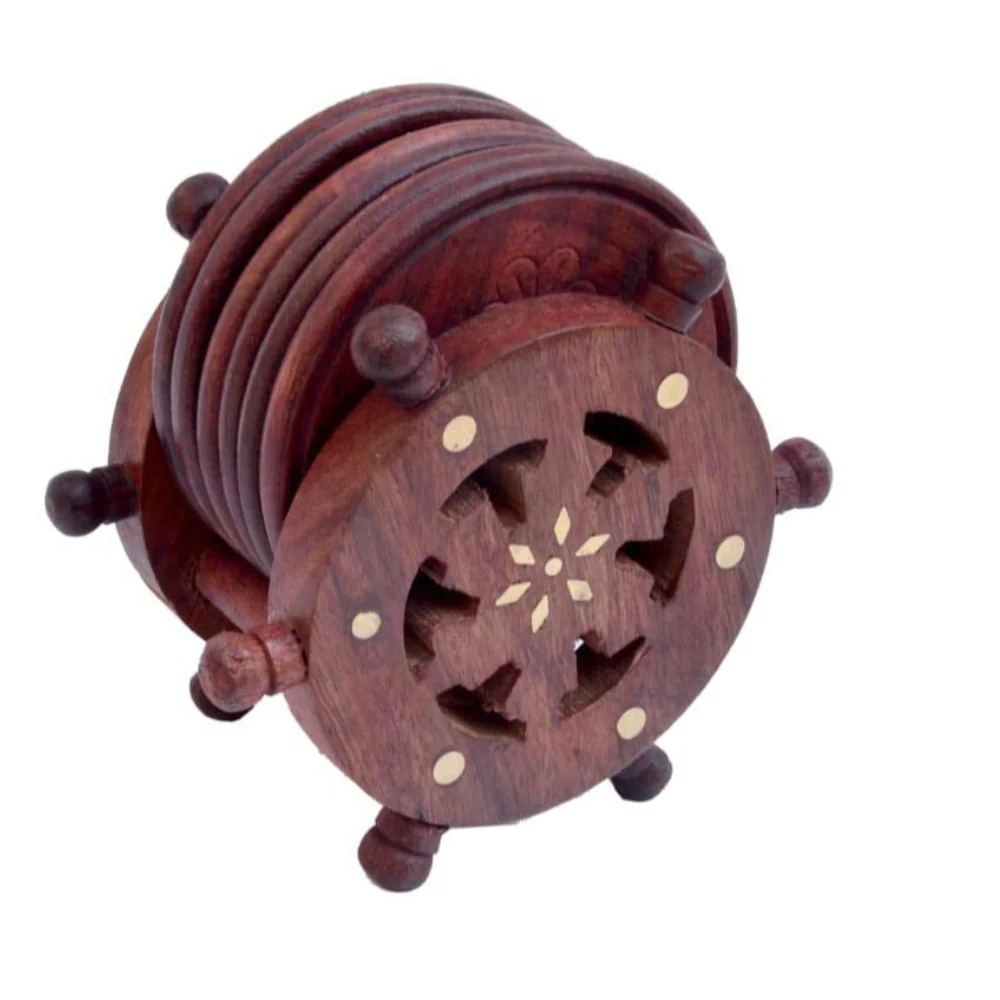 Elevate your hosting experience with the MSGLOBALEX Round Wooden Tea Coaster Set, a beautifully handcrafted collection of six wooden coasters with a matching holder. Expertly made by skilled artisans from Saharanpur, India’s globally recognized woodcraft hub, this set brings the warmth of traditional craftsmanship into refined, modern living spaces.