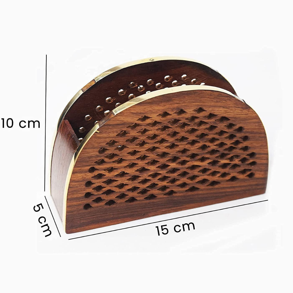 Elevate your table setting with the timeless beauty of our Handcrafted Wooden Napkin Holder, an exquisite piece born from the rich woodworking heritage of Saharanpur, India. Skillfully made by rural artisans using ancient Indian techniques, this elegant napkin stand blends traditional craftsmanship with contemporary utility.